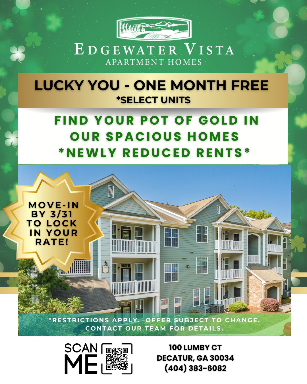 Welcome to Edgewater Vista, a premier apartment community in Decatur, GA, where comfort, convenience, and modern design come together to create an inviting living experience. Our spacious 1, 2, and 3 bedroom apartments are thoughtfully designed with contemporary features and luxurious amenities to enhance your lifestyle. Enjoy the natural beauty of lush landscaping and top-tier amenities, all in a welcoming and peaceful environment. Whether you’re relaxing at home or exploring the vibrant community, Edgewater Vista offers the perfect escape, without ever leaving home. Discover the finest apartment homes in Decatur today – your ideal living space awaits!
